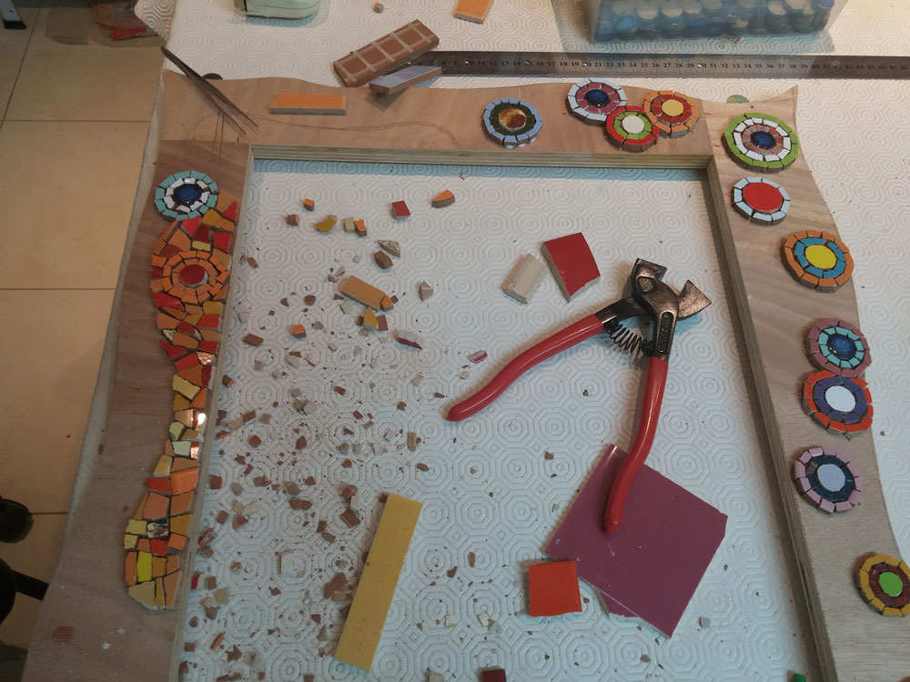 כשאני מחזיקה בקרמיקה, או זכוכית ביד, וחושבת איך היא יכולה לשמש אותי בעבודת הפסיפס שאני עושה, אני בוחרת בצבע שעושה לי וואוו קטן בלב, באותו אריח, שכשאני מניחה אותו בעבודה, גורם לי לחייך. נדמה לי שאם עבודת הפסיפס הופכת אותי מחויכת, היא תעלה חיוך גם אצל אחרים. לפעמים כל כך חסרה לנו שמחה בחיים.